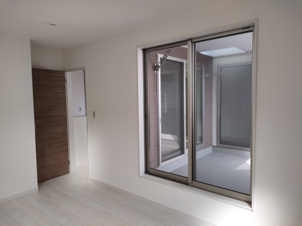 平面駐車場、駐車3台無料、専有面積30坪以上、LDK19.5畳、リビングの隣和室、広々インナーバルコニーで、急な雨でもお洗濯物は濡れません。